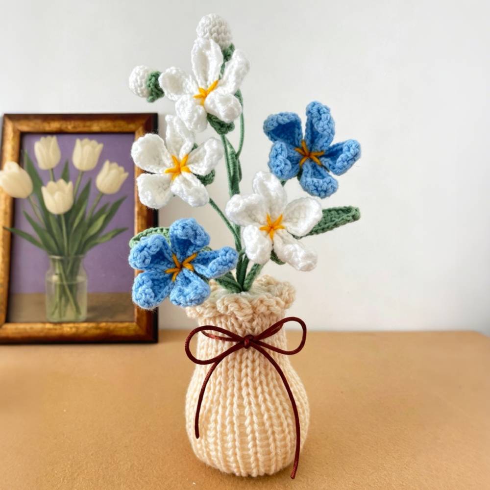 Handmade Crochet Wildflower Arrangement in Vase – 30 cm – No Watering Needed