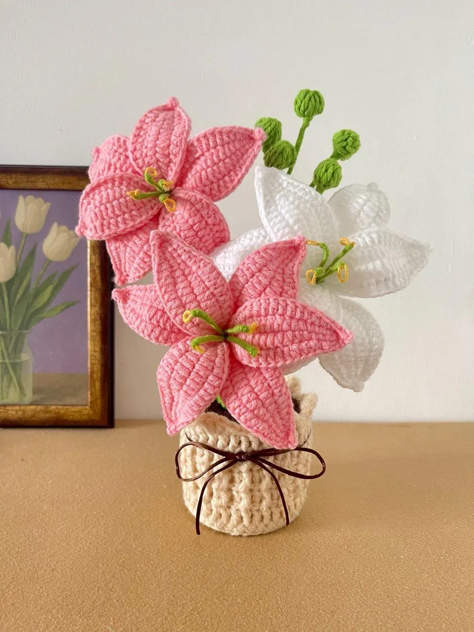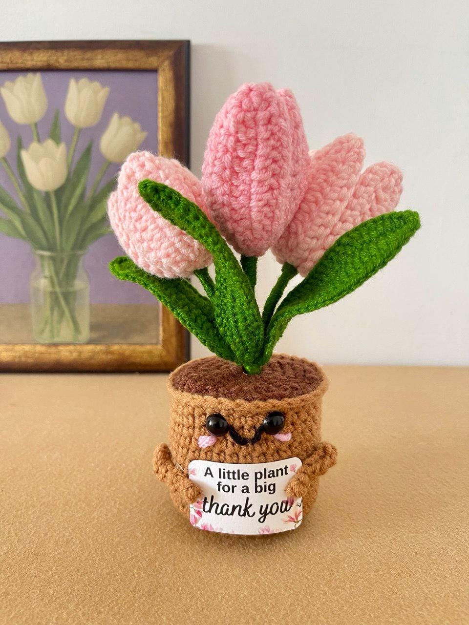 Mother’s Day Crochet Flower Gift – Handmade Lily, Tulip or Rose – Personalized Plaque